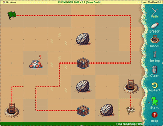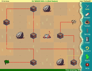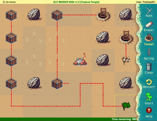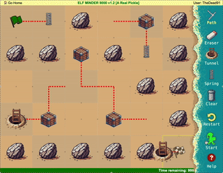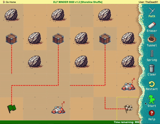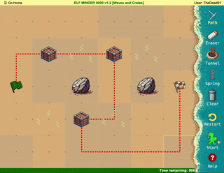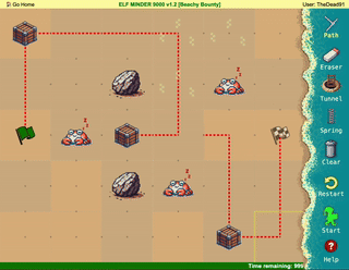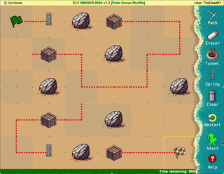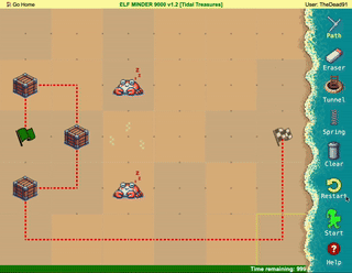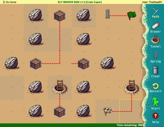 Be sure you read the “Help” section thoroughly! In doing so, you will learn how to use the tools necessary to safely guide your elf and collect all the crates.