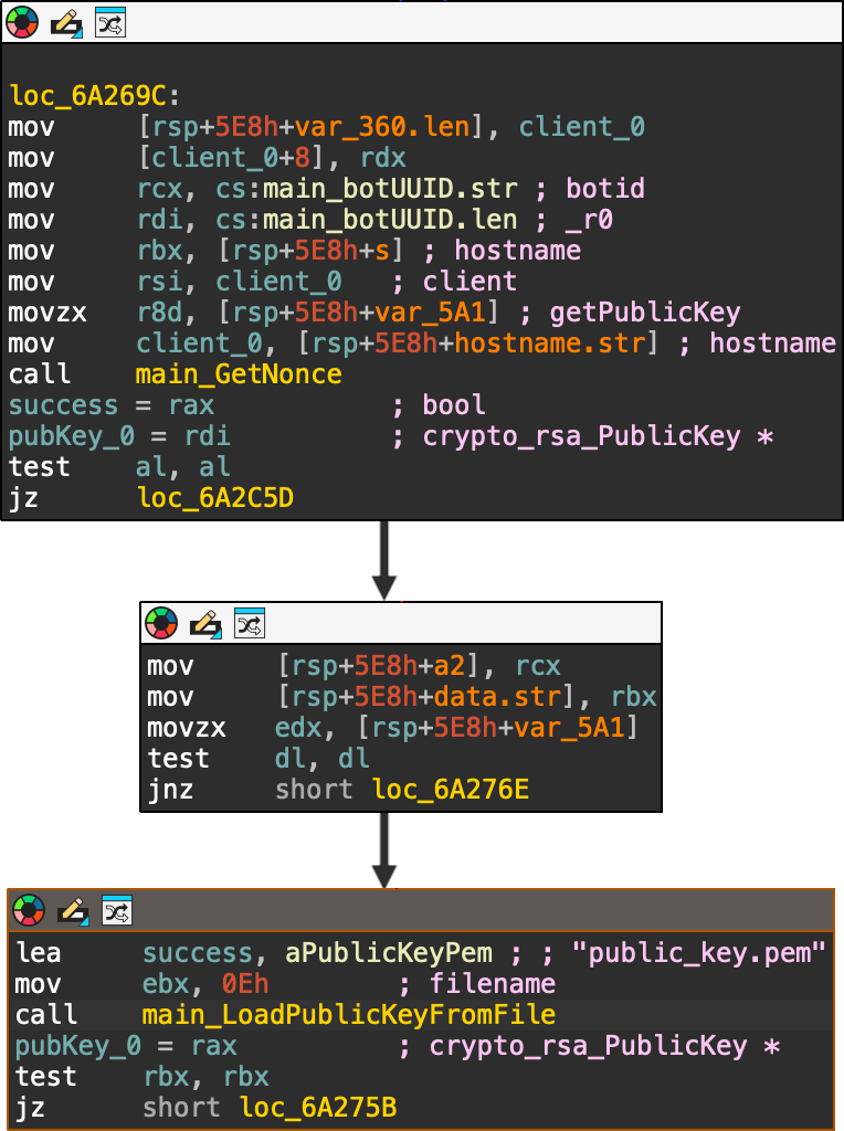 From: Dusty Giftwrap The Frostbit ransomware appears to use multiple encryption methods. Even after removing TLS, some values passed by the ransomware seem to be asymmetrically encrypted, possibly with PKI. The infrastructure may also be using custom cryptography to retrieve ransomware status. If the creator reused our cryptography, the infrastructure might depend on an outdated version of one of our libraries with known vulnerabilities. There may be a way to have the infrastructure reveal the cryptographic library in use.