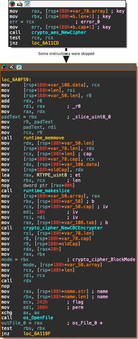 The encryptFile function encrypts the file using AES-CBC and the previously generated key along with the nonce as IV: