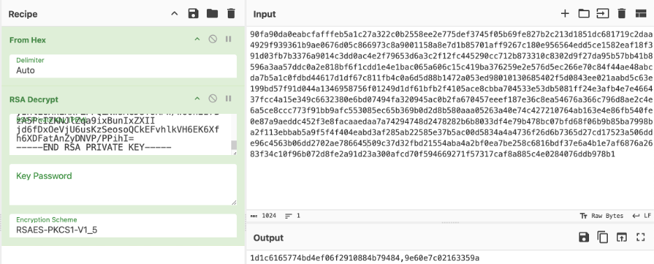 Having obtained the private key, we can now decrypt the encrypted key retrieved from the pcap: